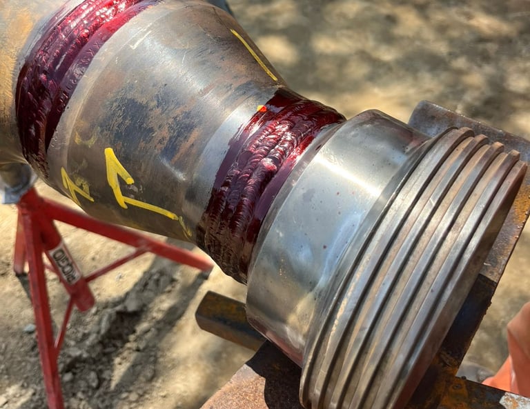 Detectamos fisuras y porosidades aplicando líquidos penetrantes, asegurando la calidad de las superficies metálicas.